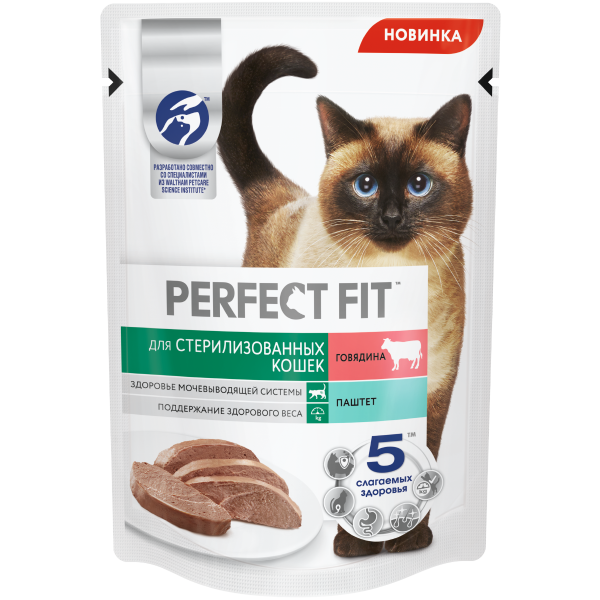 Корм Перфект Фит для стерилизованных кошек Говядина 75г пп