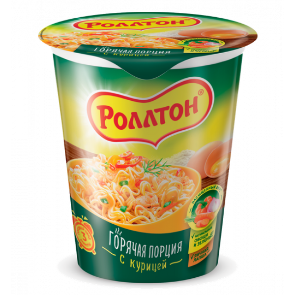 Лапша Роллтон Горячая порция С курицей 70г стакан