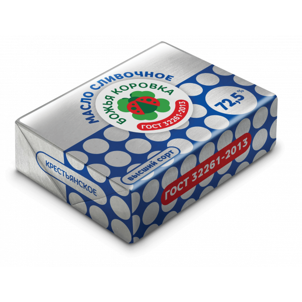 Масло сливочное Крестьянское Божья Коровка 72,5% 180г фольга БЗМЖ