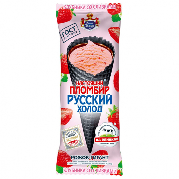 Мороженое Рожок Настоящий пломбир Клубника/сливки 110г БЗМЖ