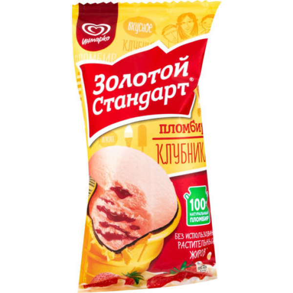 Мороженое Золотой Стандарт Пломбир Клубника 85г ваф ст БЗМЖ