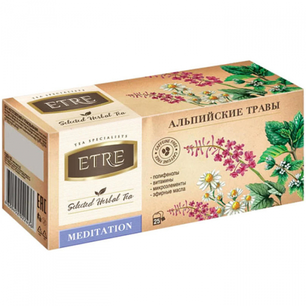Напиток чайный Этре черный Альпийские травы 25*1,5г бк