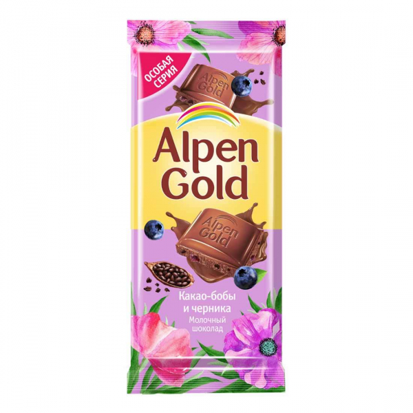 Шоколад Альпен Гольд молочный Какао-бобы/черника 85г