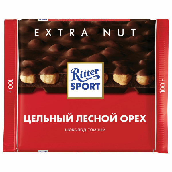 Шоколад Риттер Спорт Экстра темный С цельным лесным орехом 100г пп