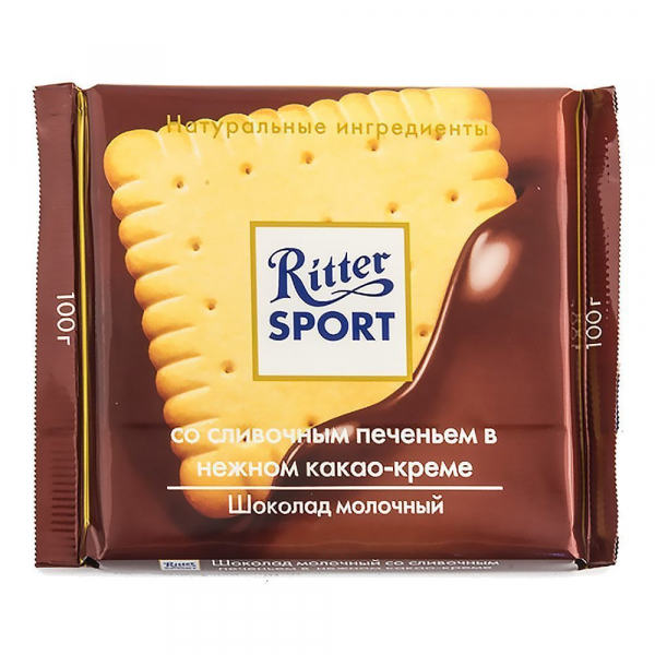Шоколад Риттер Спорт молочный с печеньем 100г пп