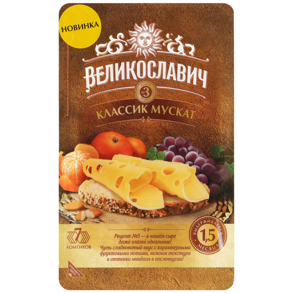 Сыр Великославич Классик Мускат 45% 140г пп нарезка БЗМЖ